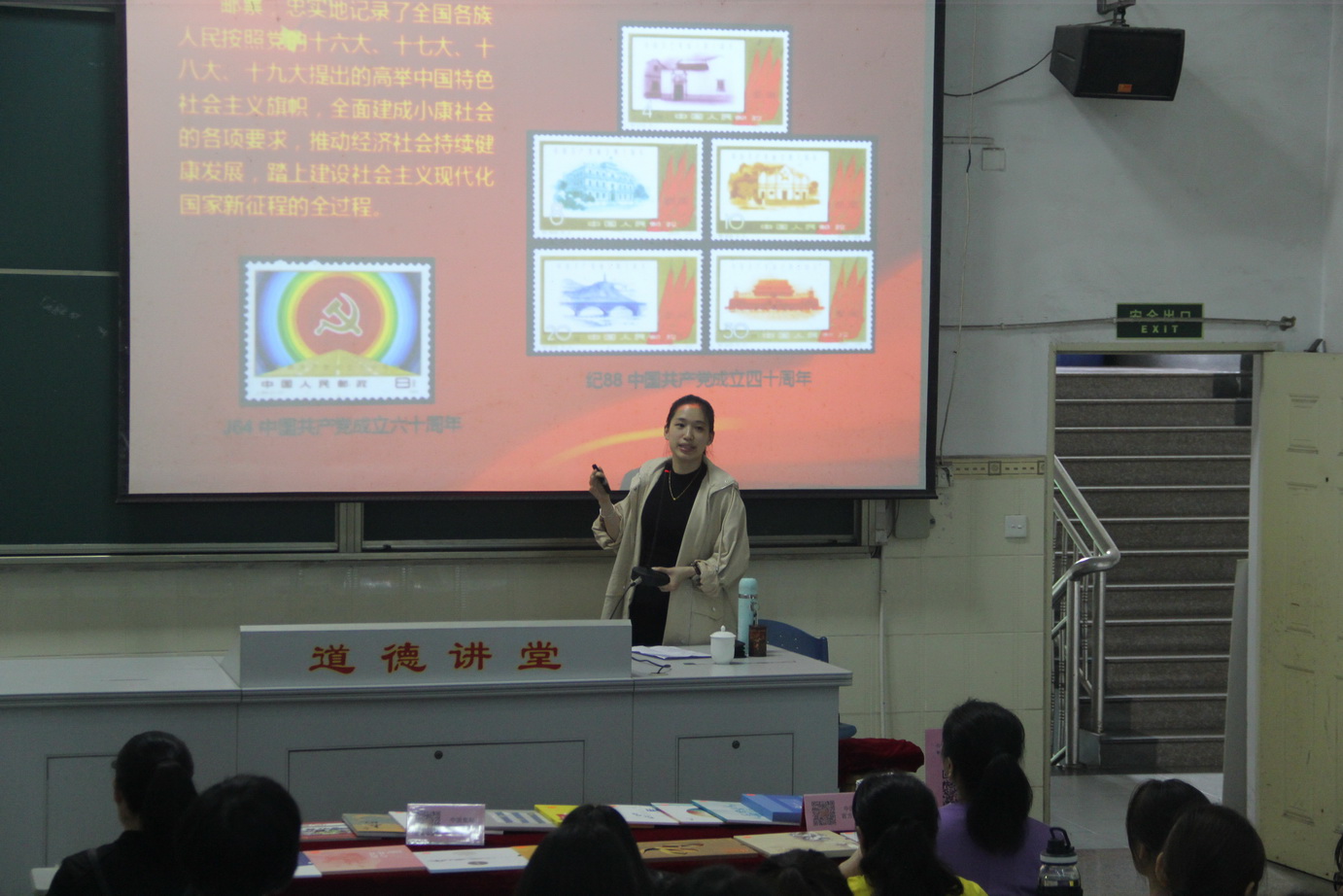 为拓宽学生的视野,培养学生高雅的情操,5月29日下午,泉州市集邮协会讲师蔡佳华应邀到慈山分院作题为“不忘初心,砥砺前行--方寸世界回望中华人民共和国成立70周年”邮票知识讲座,安溪县集邮协会的秘书长陈小玲、理事徐英姿、苏营芳以及分院部分教工和2018级广告设计与制作、视觉传播设计与制作、审计专业学生聆听讲座。