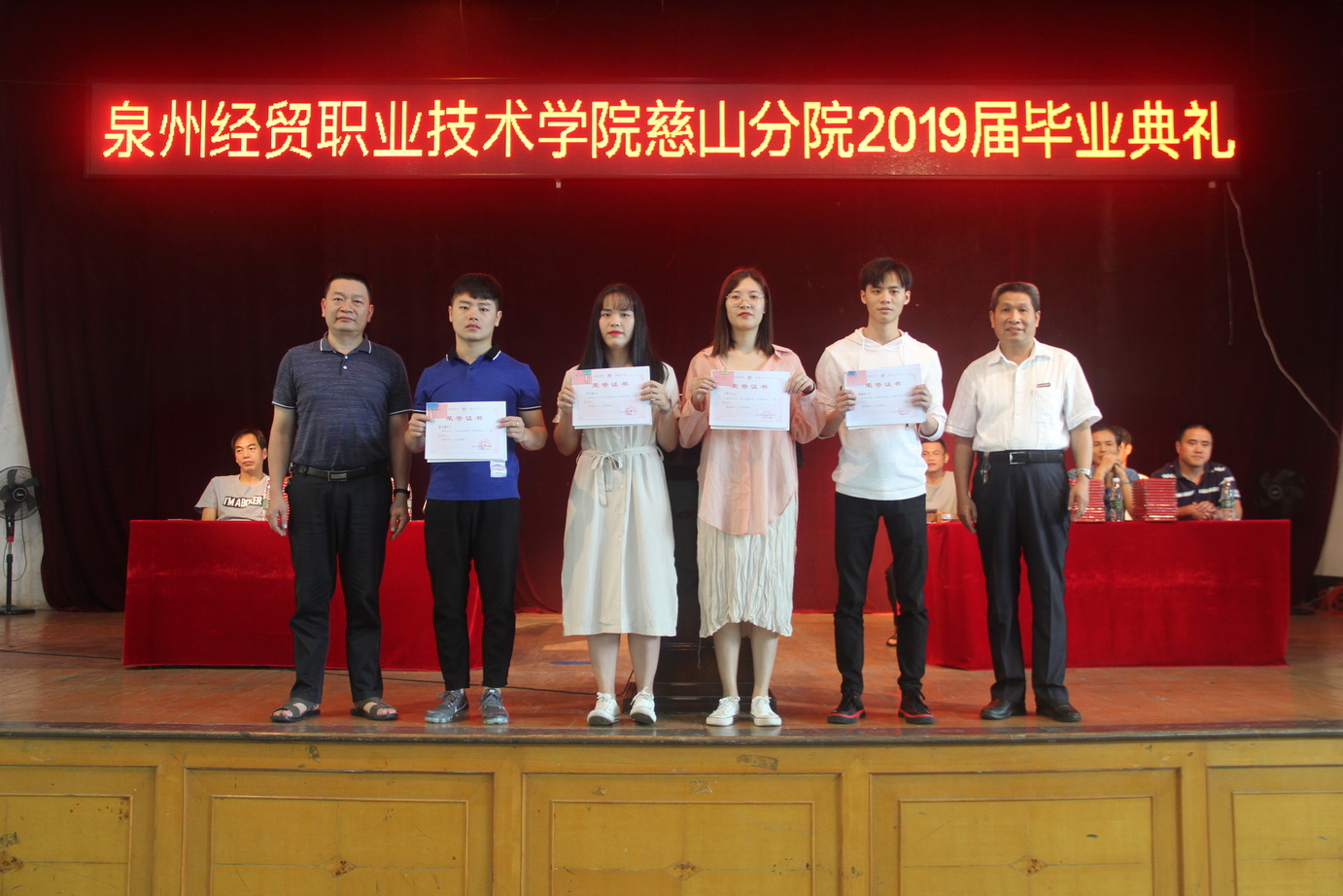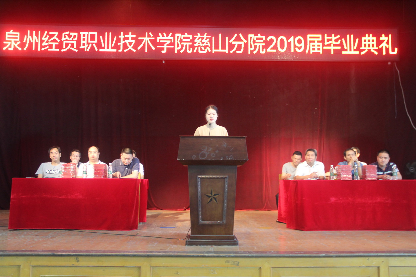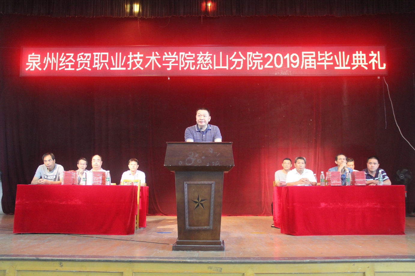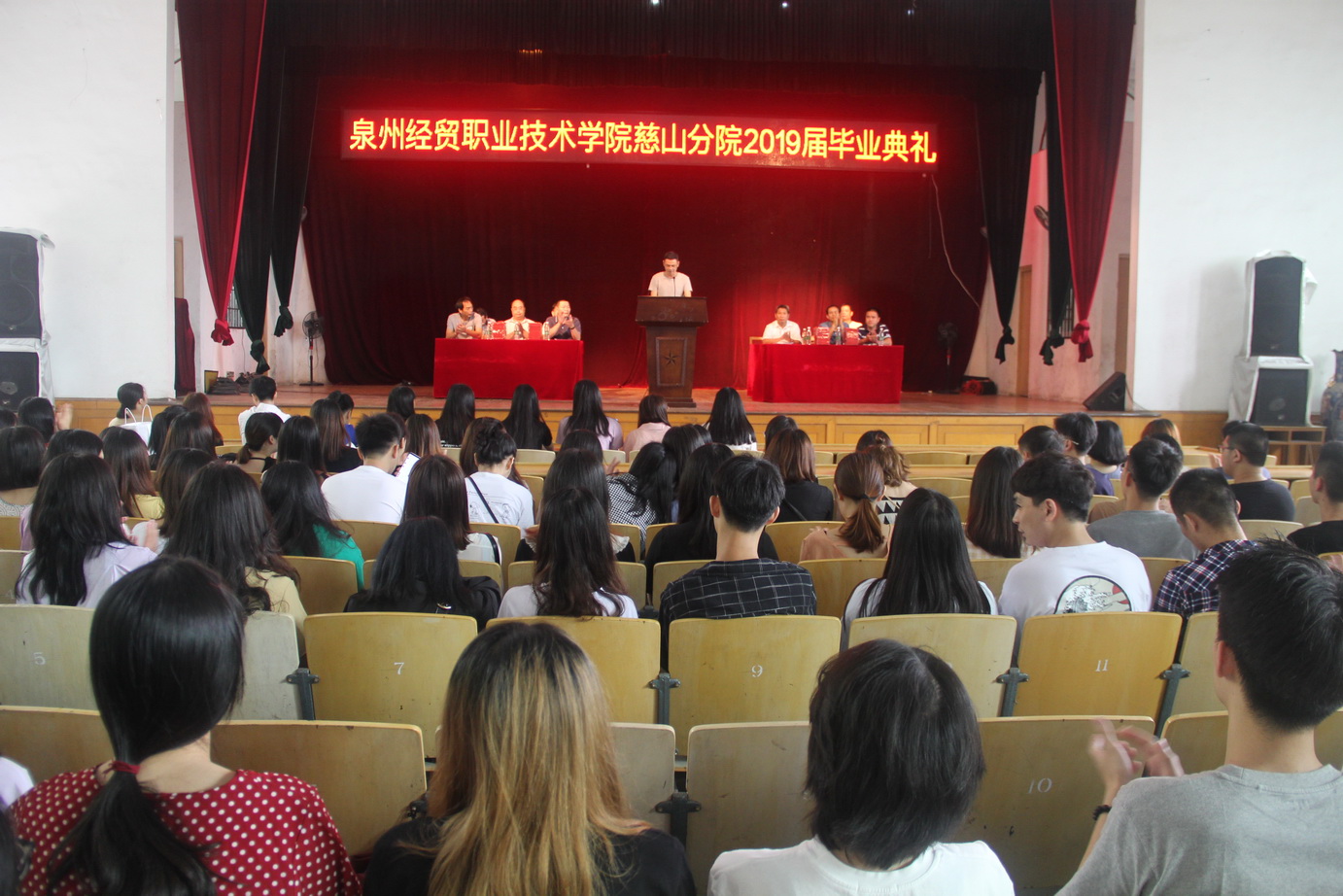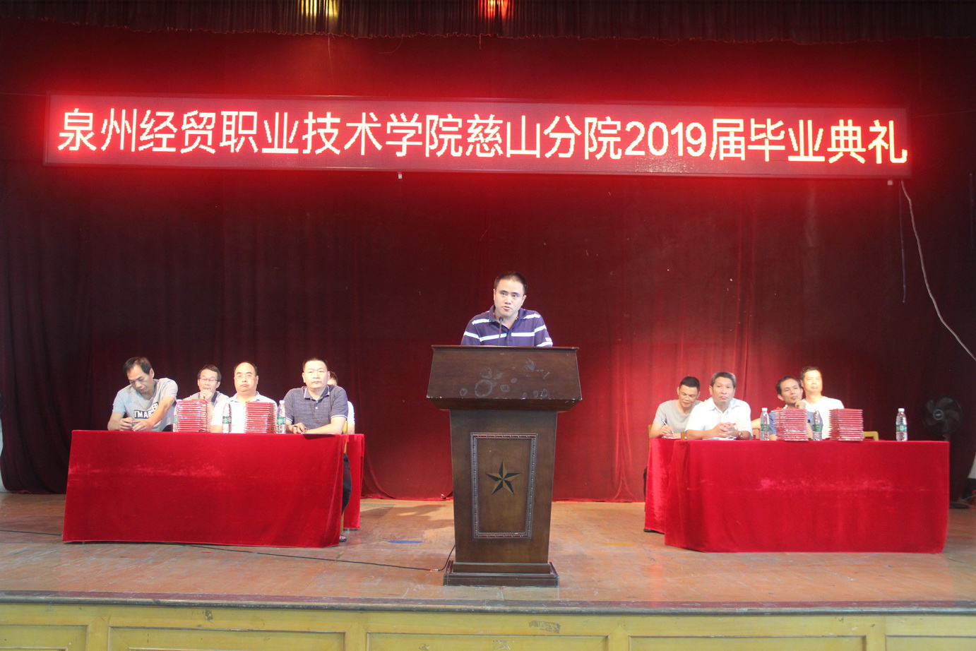 5月29日上午,泉州经贸学院慈山分院2019届毕业典礼暨表彰大会在大礼堂隆重举行。泉州经贸职业技术学院党委委员、慈山分院院长柯艺灿,慈山分院副院长梁松刚,毕业班班主任和分院科室领导出席了本次大会。大会由梁松刚副院长主持。