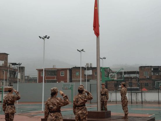 仪式在庄严的《义勇军进行曲》中拉开帷幕。国旗护卫队踏着铿锵正步护卫国旗入场,全体师生肃立行注目礼。迎着初升朝阳,五星红旗冉冉升起,全体师生齐声高唱国歌,铿锵誓言响彻校园,充分表达了对祖国的崇高敬意与热爱之情。