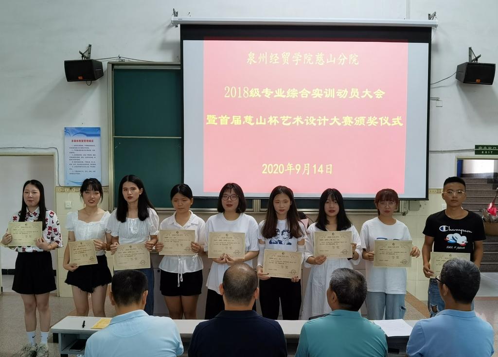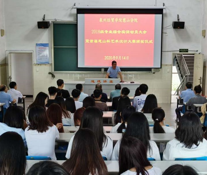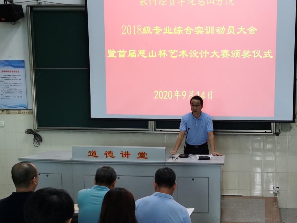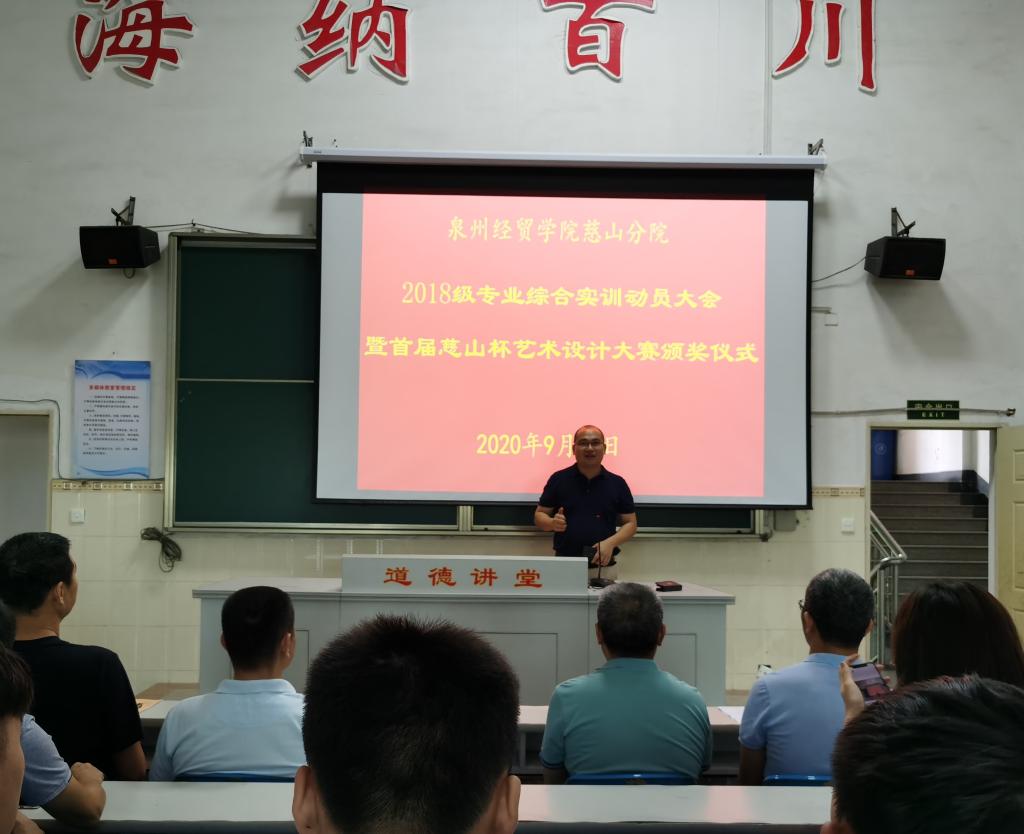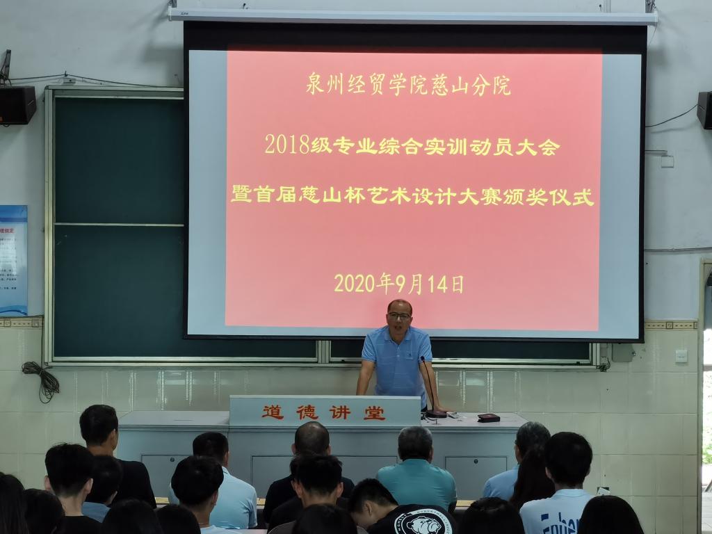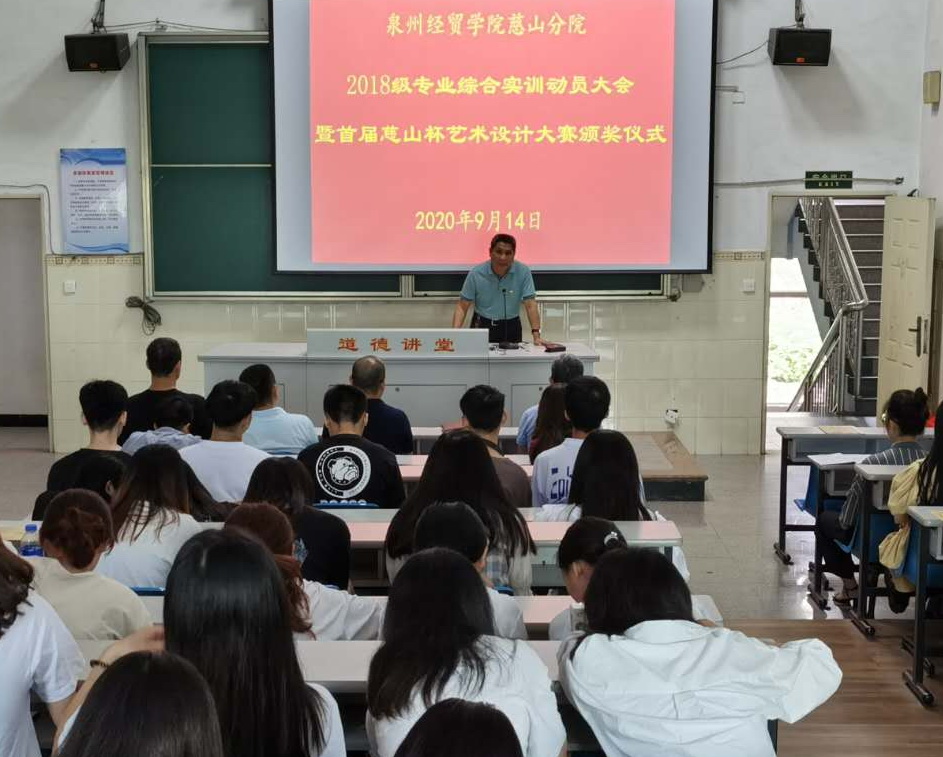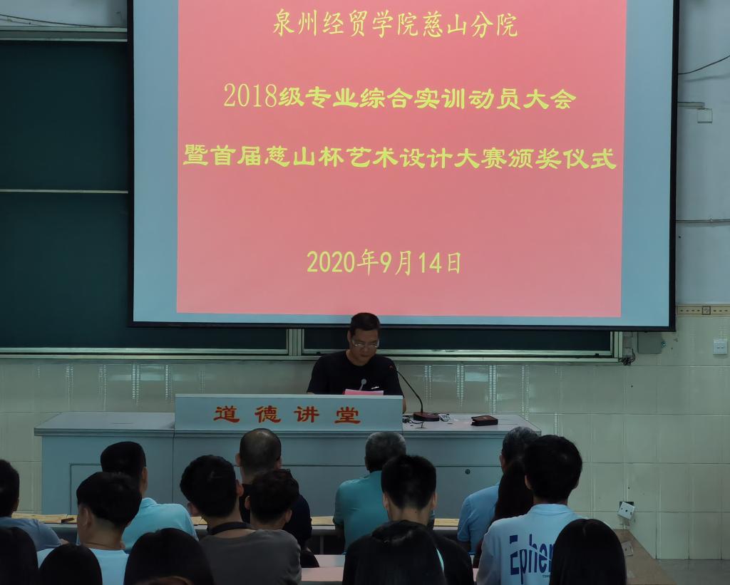 为做好慈山分院2018级艺术设计类专业学生赴厦门布塔公司安溪龙门实训基地的专业综合实训工作,9月14日上午,慈山分院在综合楼多媒体教室举行2018级专业综合实训动员大会暨首届“慈山杯”艺术设计大赛颁奖仪式。