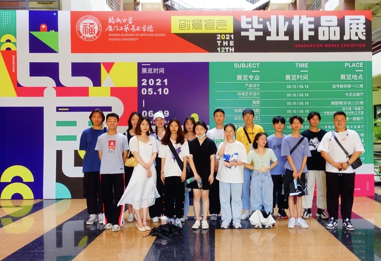 2021年5月27日,慈山分院在陈清文、潘祺晖、黄慧娟等老师带领下,组织13名学生代表前往厦门集美参观福州大学厦门工艺美术学院2021届毕业设计作品展览。