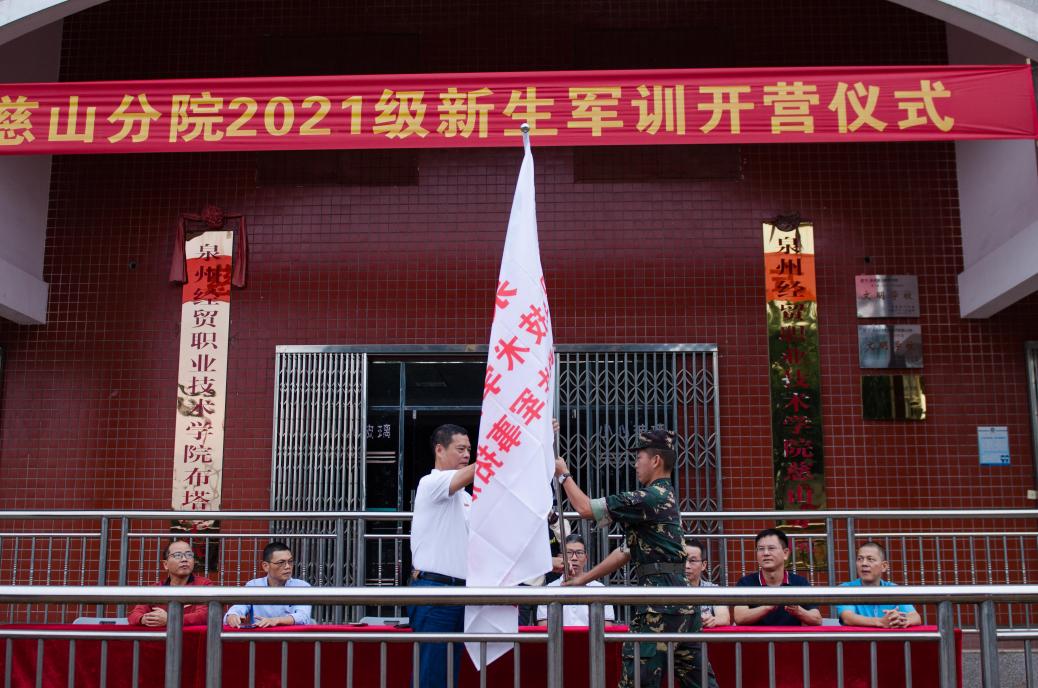 10月20日,泉州经贸学院慈山分院2021新生军训开营仪式在综合楼前广场隆重举行。