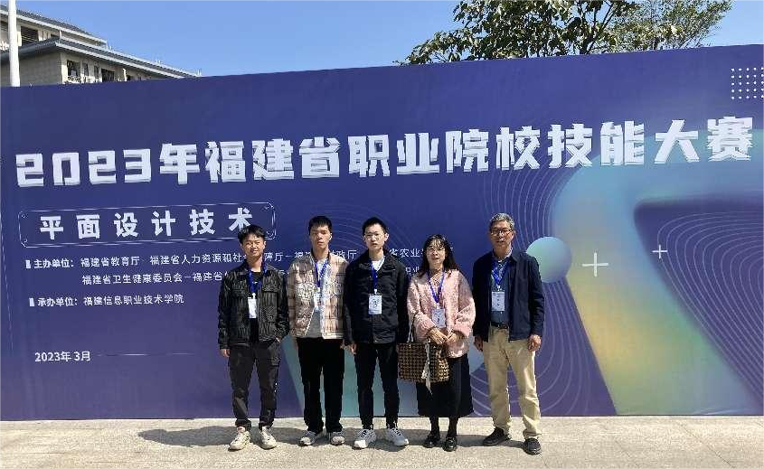 在2023年福建省职业院校技能大赛“平面设计技术”赛项比赛中,视觉201班吴明凯(指导老师 吴小红)、广告203班上官鸿彬(指导老师 陈清文)分别荣获一等奖和三等奖。我院首次获得该赛项一等奖。