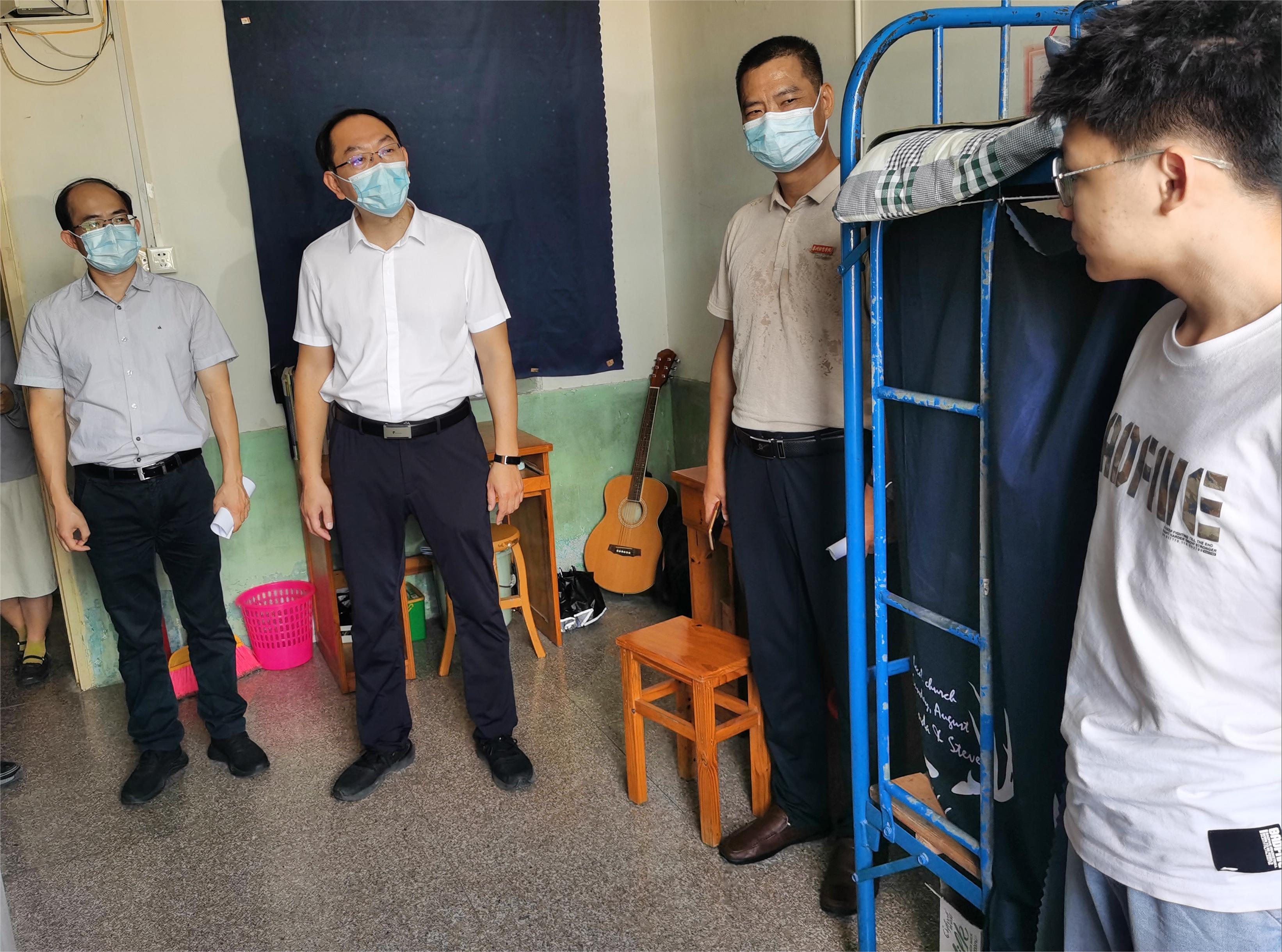 林曙铭副县长一行深入查看校门、食堂、学生宿舍等重点场所,随机抽查了食堂员工及学生核酸检测情况,认真听取我校秋季开学以来疫情防控工作汇报,关切询问防控工作中师生思想动态及学校存在困难。