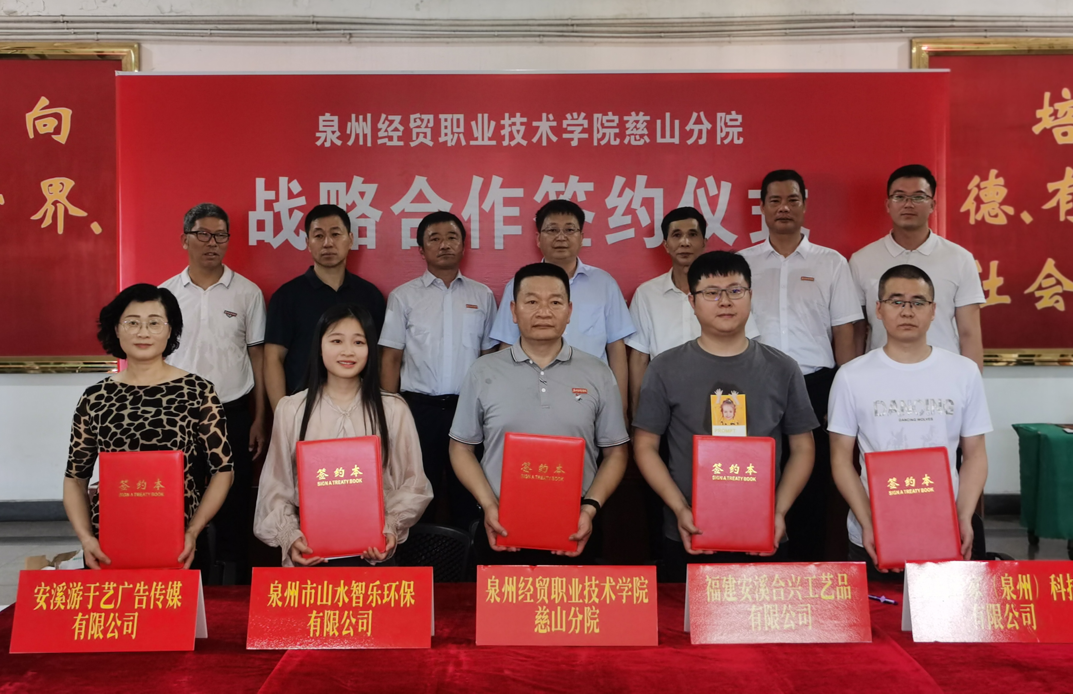 黄敬前院长和刘永强县长共同见证了慈山分院与安溪游于艺广告传媒有限公司等4家企业签订战略合作框架协议。