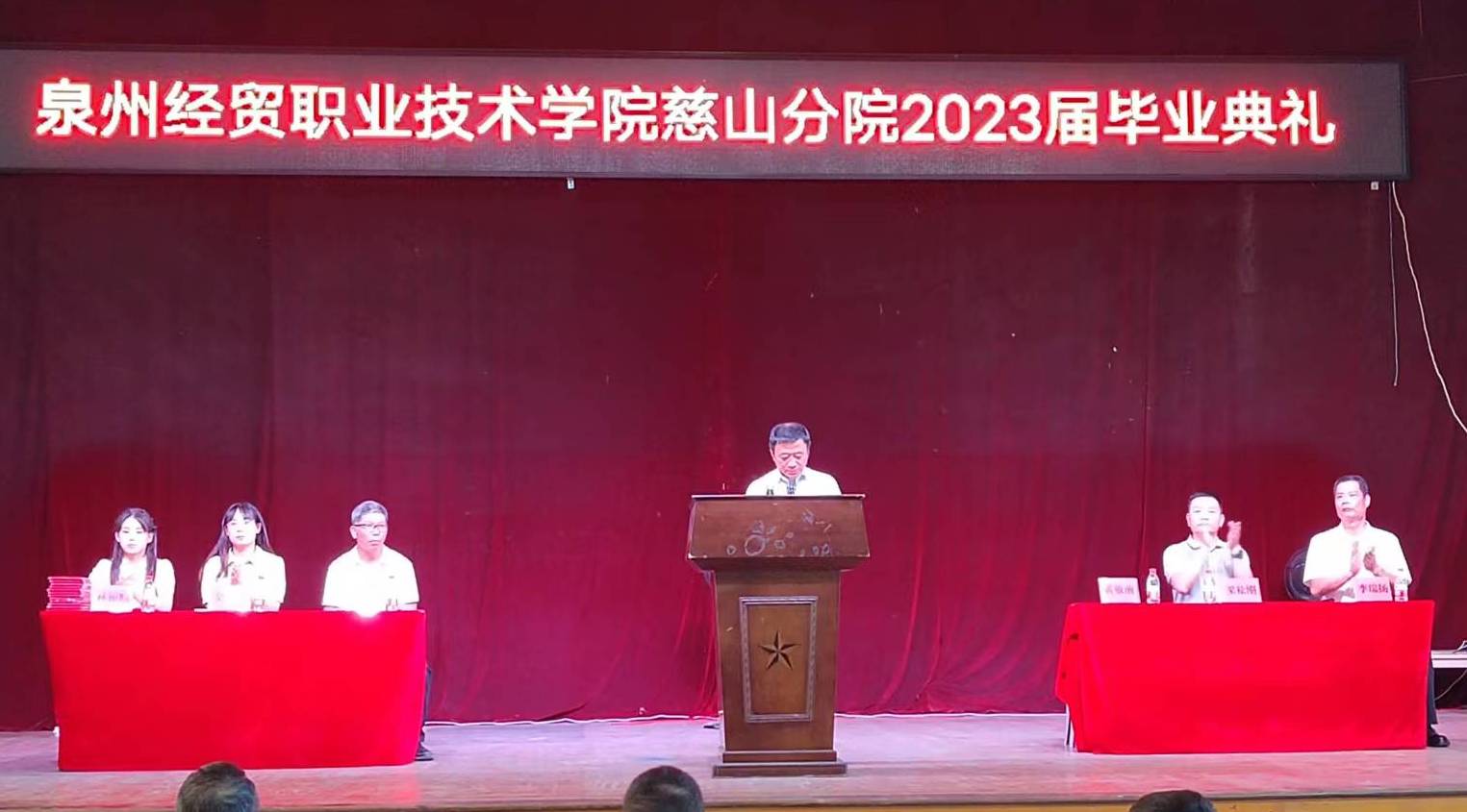 5月30日上午,慈山分院2023届毕业典礼在分院礼堂隆重举行。学院党委副书记、院长黄敬前,慈山分院副院长梁松刚、王国阳、李瑞扬,分院科室负责人,辅导员、班主任及2023届全体高职毕业生参加典礼,毕业典礼由王国阳主持。