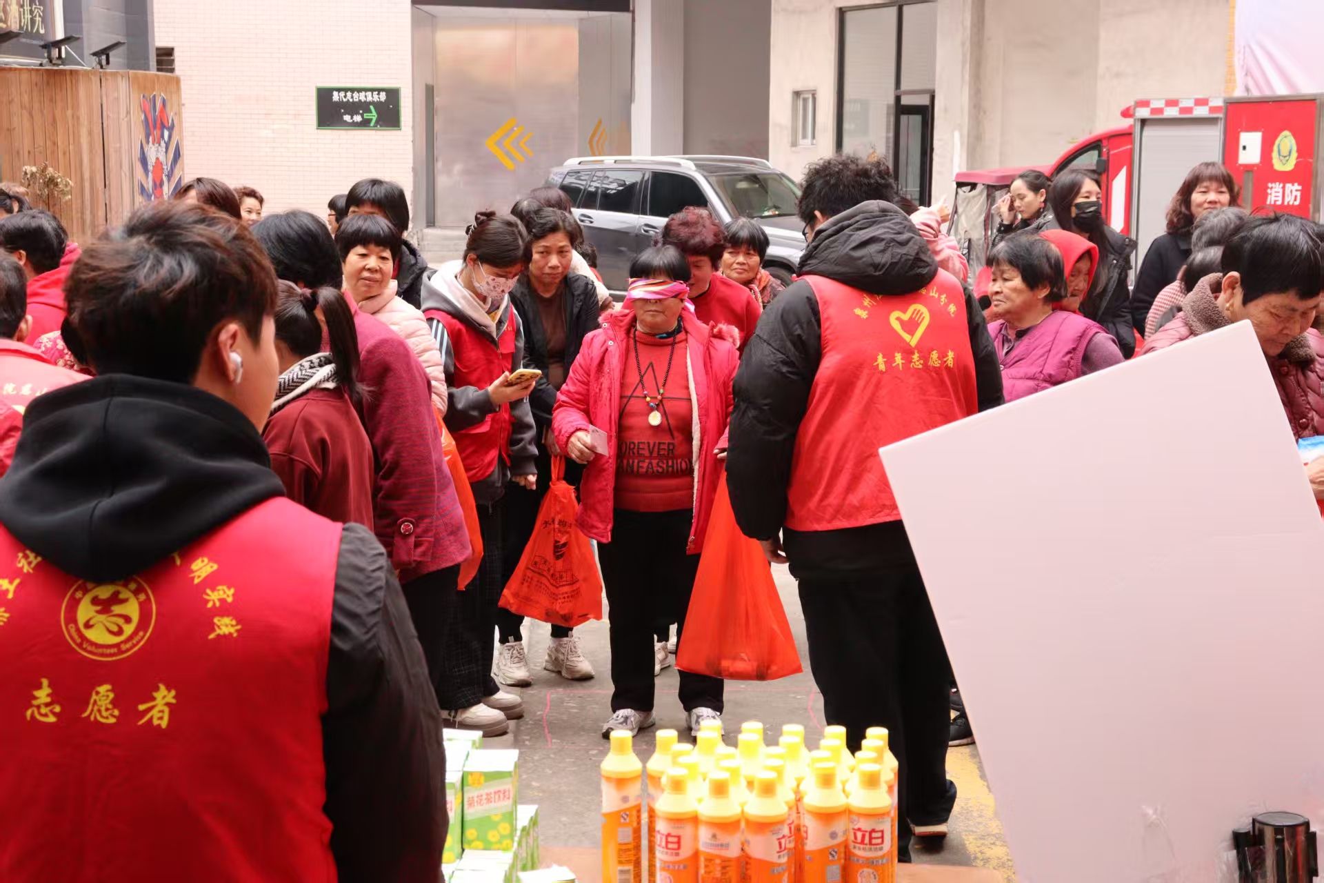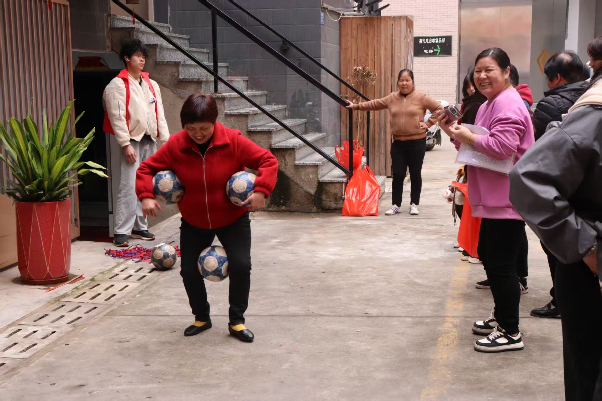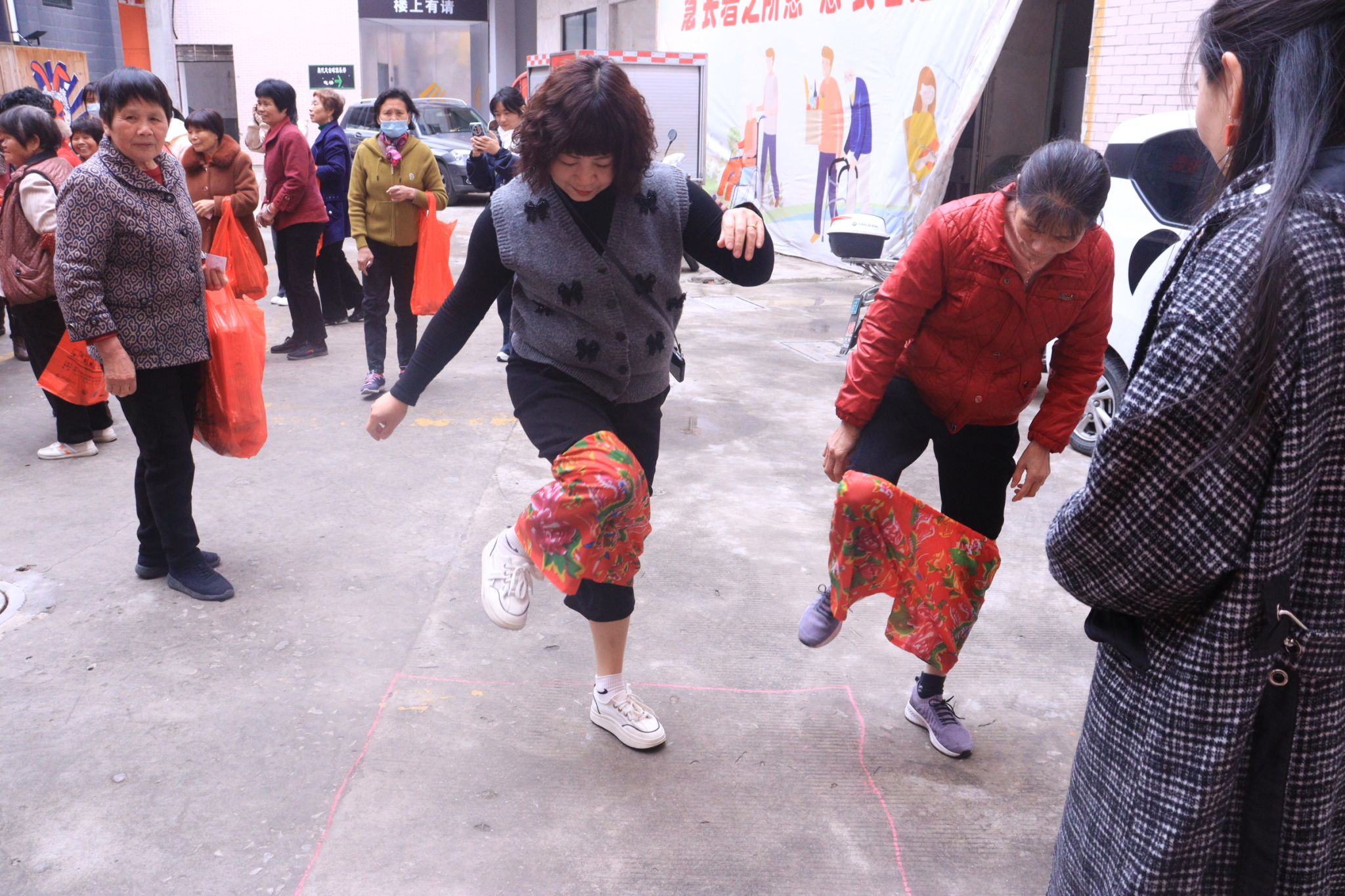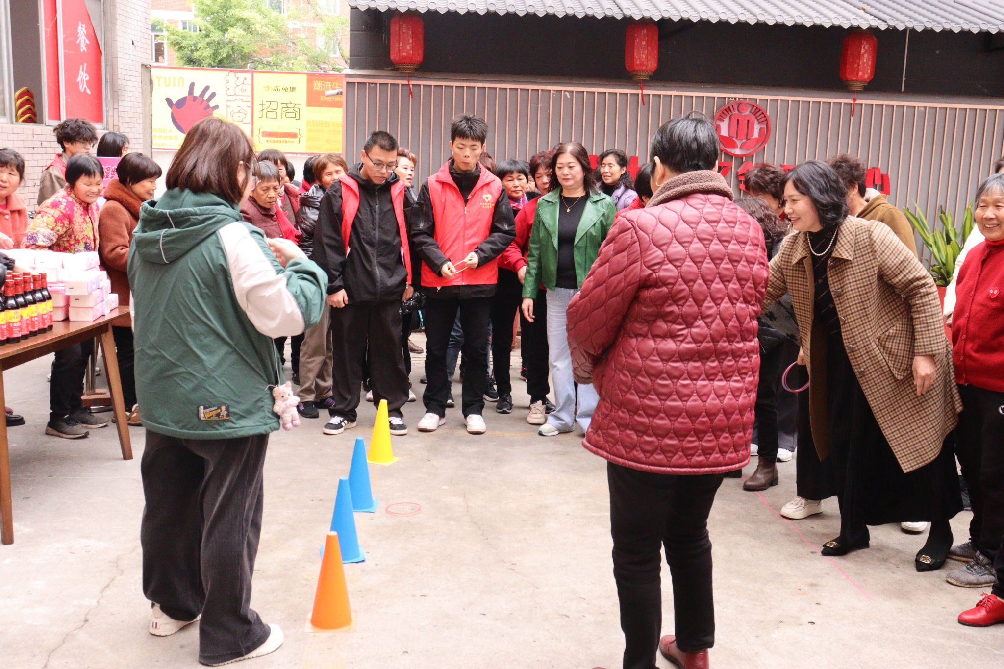 趣味游戏环节, “蒙面敲锣”、“套圈”、“徒手穿花裤”、“原地踏步”、“企鹅步”等游戏趣味十足,吸引了许多妇女同胞参与。志愿者们热情地为参与者讲解游戏规则,维持游戏秩序,并为获胜者颁发奖品,现场气氛热烈,欢声笑语不断。