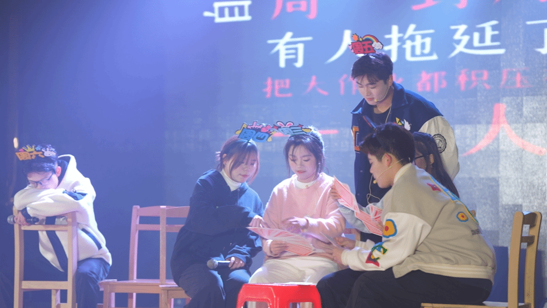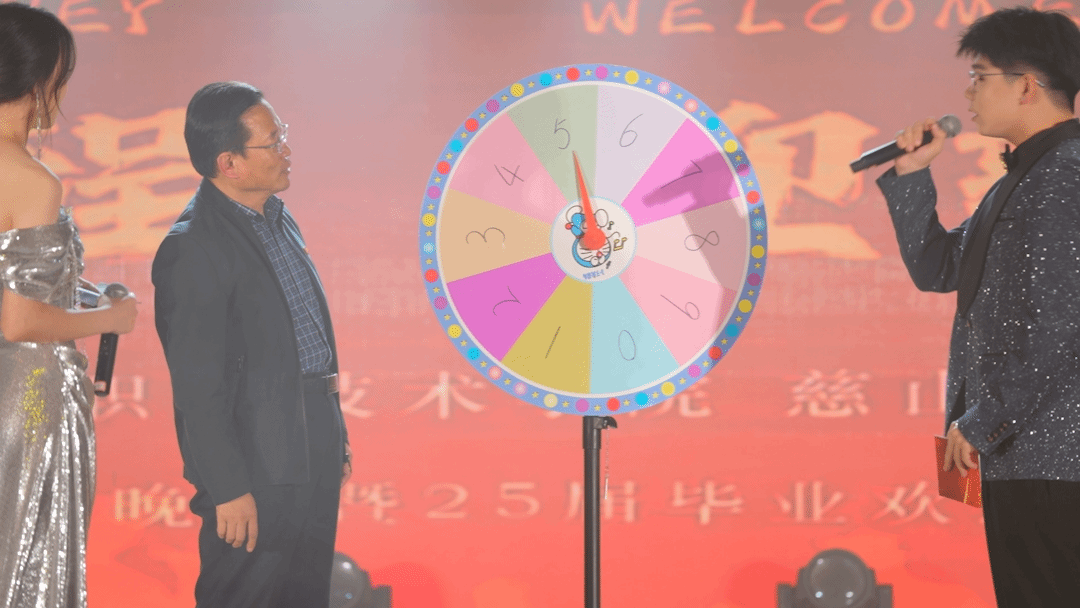 晚会还设置了激动人心的抽奖游戏环节,趣味横生,现场欢呼声、惊叹声此起彼伏;师生们踊跃参与,台上的参与者们全情投入,台下观众则加油助威,欢笑声回荡在整个会场。